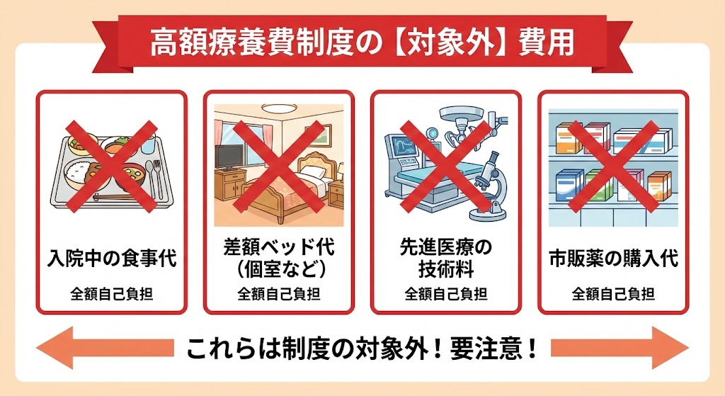 何でもかんでも安くなるわけではありません。以下の費用は制度の対象外です。